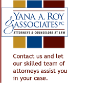 At the Law Firm of YANA A. ROY & ASSOCIATES, P.C., we are dedicated to providing the finest representation every day to every client. For best advice, personal attention and tenacious commitment individuals and businesses turn to us for protecting their interests. You demand and deserve the best and we take time to listen. Our Firm offers you creative, effective, timely and proactive representation that will make a difference in the outcome of your individual case.